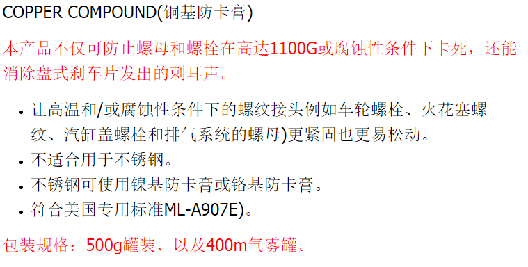 史班哲銅基防卡膏螺紋防緊蝕膏銅基防卡膏COPPERCOMPOUND金牛油