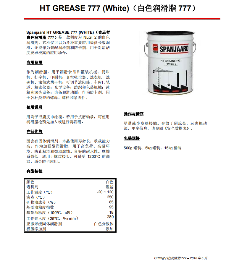 Spanjaard HT GREASE 777(WHITE)史班哲白色防卡劑光學(xué)設(shè)備潤滑脂