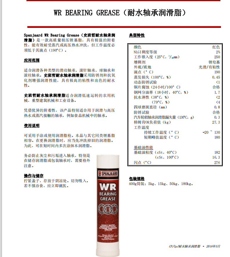 南非史班哲耐水軸承潤(rùn)滑脂 WR BEARING GREASE耐高壓熱水潤(rùn)滑脂